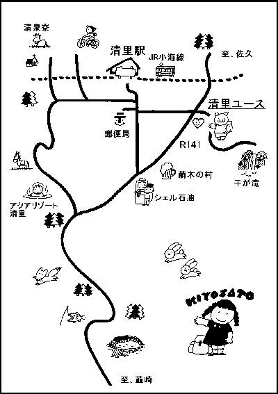 当、清里ユースホステルは、JR小海線の清里駅から徒歩5分と近く 国道141号線沿いにあります。