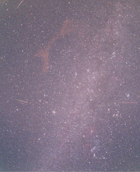 全天写真 コニカ800ネガ17mmF4.0開放 11月19日1h47m〜1h57m 自作全天カメラ
