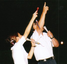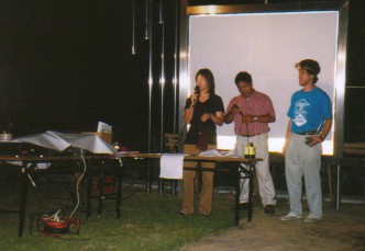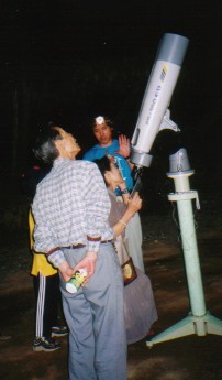 望遠鏡で説明する川住さんと三枝さん エコハウス&ライトショップ沓風杜社 昼間の部 場所 沓風杜社研修室 16:00〜18:00手作り望遠鏡講座 講師林宏明(定員15人) その他の時間は環境ビデオの上映 夜間の部 場所 オギノJOY第2駐車場 19:30〜21:00天体望遠鏡による星空観察 講師林宏明・太田(高橋製作所 営業) お問合せ先 沓風杜社 田辺久 055−230−2136