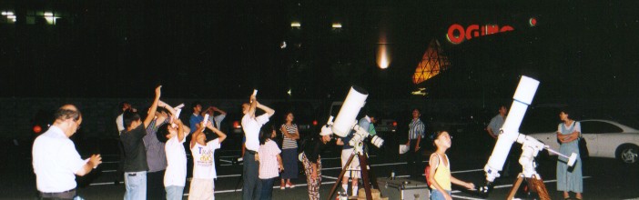 プレイベントも開催されました 8月1日にライトダウン甲府バレーのイベントが開催されましたが、私(大友)は、天の 川を見る実行委員会のメンバーとして、地域会場の韮崎の会場に15cmの大型双眼鏡を持 ち込んで皆様に白鳥座のアルビレオと言う二重星をお見せしました。アルビレオは宮沢賢治の 銀河鉄道にも出てくる、オレンジと青の美しい二重星です。韮崎会場は伊藤さんと新井さんの 司会進行により進められました。私が会場に到着した午後7:00頃は、あいにくのべた曇り でした。FM甲府の生放送を聞きながら望遠鏡をセットしました。私一人だけが他のメンバー と離れて辺境の地韮崎会場(地域会場としては最も人が集まっていた。UTYも来ていた。) へ来たけれどFMの電波で他の会場とつながっているんだなと実感しました。生放送の中で行 方不明だった中沢さんが、春日モールのビルの屋上で天体観察会を開いていると知りました。 8:00頃は雲が厚くなって電波の受信状態が悪かったのでカウントダウンは聞き取れません でした。終了まぎわの8:45頃より雲が切れてきて夏の大三角形と天の川が見えました。そ してマイクで星座とアルビレオの説明をして、希望者へ望遠鏡をお見せして終了しました。 終了後に天の川をみる実行委員会のメンバーで集まる事になっていた芸術の森公園前のカレ ー店ではJCの人たちも含めてみなの心がひとつになったと実感しました。最初の頃は、日程 の問題でもめたり実行委員会が小さくなったりして心配されることもあつたけれど結果は2回 目としては大成功(90点かな)来年へつながりました。 8月8日に韮崎の反省会が開催されましたが、その席で来年の日程に関して話題になり「ペ ルセウス座流星群の8月12日がいいのでは」と提案したところ、流れ星が見えるなんて素敵 だと盛り上がりましたが、甲府と日程が合わなくても韮崎はその日に開催すると言う意見が出 たため「ライトダウンは同じ日程で」と言っておきました。 7月28日NHK18:10からのまるまる山梨に生出演しました。 8月1日、ライトダウン甲府バレ−星空観察会会場のご案内 山梨県立科学館のメイン会場以外の会場をご案内します。 芸術の森公園(山梨県立美術館前) 昼間の部 場所 県立文学館研修室 13:00〜受付開始 13:30〜15:30手作り望遠鏡講座 講師林宏明(定員はありません)手作り望遠鏡講座 15:30〜15:45休憩 15:45〜17:00講演会 甲府で観る星・撮る星 講師三枝義一・河住 信 司会 彗星捜索家木内鶴彦 夜間の部 場所 芸術の森公園 19:30〜21:00 19:40〜21:00天の川の見える星空の下で、光害と地球環境について語って 戴きます。講師木内鶴彦・武井咲予 20:00〜21:00天体望遠鏡による星空観察 講師河住信・三枝義一・他 リニア彗星・M57(琴座リング状星雲)等の観察 お問合せ先 星空を守る会 河住 信 055−226−7255