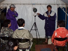 清里と言えばかつては、軽井沢に次ぐリゾートとして有名でしたが、今となっては過去 の夢物語になってしまいました。ところが「星を見に清里へ行こう」と言う合言葉は今で も健在です。そして星の良く見える季節の到来を告げるイベントとして毎年開催されてい ます。春から夏にかけては、湿気が多く清里では夜に曇る日が多いのですが、秋口のこの 頃から、夜晴れる日が多くなります。そんな最も良い季節です。 当日は夏の天の川と秋の天の川の両方を同時にご覧いただけます。皆様のご参加をお待 ちしています。会場には多くの望遠鏡を用意していますので、星空散歩をお楽しみ下さい。 開催日時 2004年9月4日(土)午後3時〜午後10時 開催場所 清里駅西町営駐車場(有料) 清里駅西徒歩5分。踏切を渡ってすぐ。 主催 清里天文同好会 後援 清里観光振興会・清里高原ペンション組合 イベント内容 14:30〜 受付開始 15:00〜22:00 会場テントにおける物品の販売および夜食の提供。 15:00〜16:30 手作り天体望遠鏡講座 講師 林 宏明。定員20名。 小さいお子様は、保護者同伴でお願いします。 15:00〜16:30 手作りプラネタリウム 材料費500円。 16:30〜17:20 アクアマリンコンサート1 18:00〜22:00 各種望遠鏡による天体観望会・参加費無料。 19:00〜20:00 各地のスター紹介、自慢の望遠鏡紹介。 20:00〜21:00 アクアマリンコンサート2 21:00〜22:00 全員参加の無料抽選会。(受付は午後8時終了。)