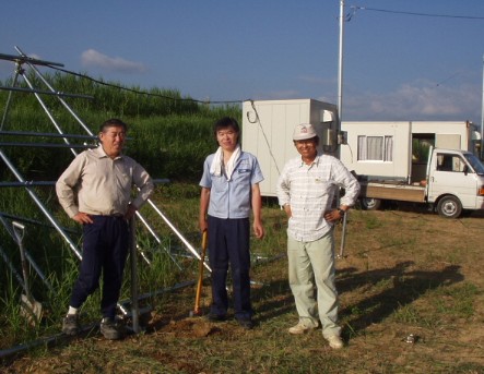 発電所が完成してみんなで記念撮影しました。(ビールで祝杯してほろ酔い状態)