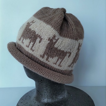 アースカラーでアルパカを7匹ぐるりと編み込みました。
