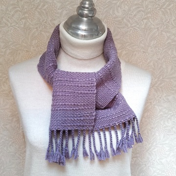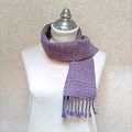 結ばないで上着を着ても気にならない、 丈の短いマフラーです。 胸元でチョコンと結ぶこともできますので、 襟元のアクセントにも使い易く、小さいけど暖かです。 少し灰色がかった薄紫色です。 よこ糸にスラブ毛糸を用いましたので、 少しデコボコした表情のある織り地です。 お出かけの時にさっと首元にかけられる、 こんな短い丈のマフラーが一枚あると、 とても重宝です。 かさばらないの丸めて手提げに入れて おけるのも嬉しいです。 扱いやすいので、ご年配の方にも大変おすすめです。 |