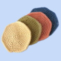 7号かぎ針でコースターを編んでみました。 直径10cmのものが1枚8gでできました。 少し小さめですので、10gのちび玉を1つ使って編むと ティーカップにはちょうど良いかと思います。 色違いでたくさん揃えると楽しいですね。 |