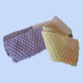 こちらは鹿の子編みのミニマフラーです。 ちび玉を1袋分(90g)使ったら、幅13cm×長さ120cm のものが編めました。8号棒針使用です。 |