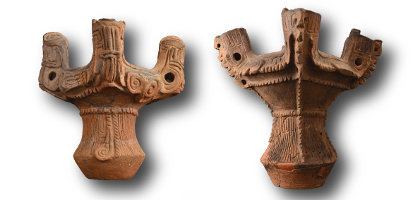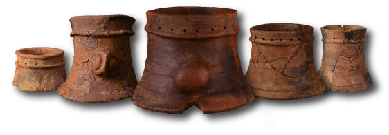(中央)曽利遺跡出土竹筒形有孔鍔付土器 他