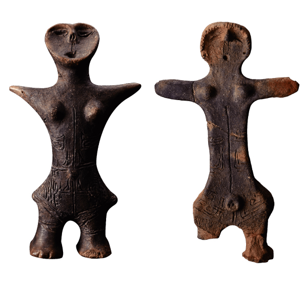 (右)前付遺跡出土土偶/笛吹市教育委員会